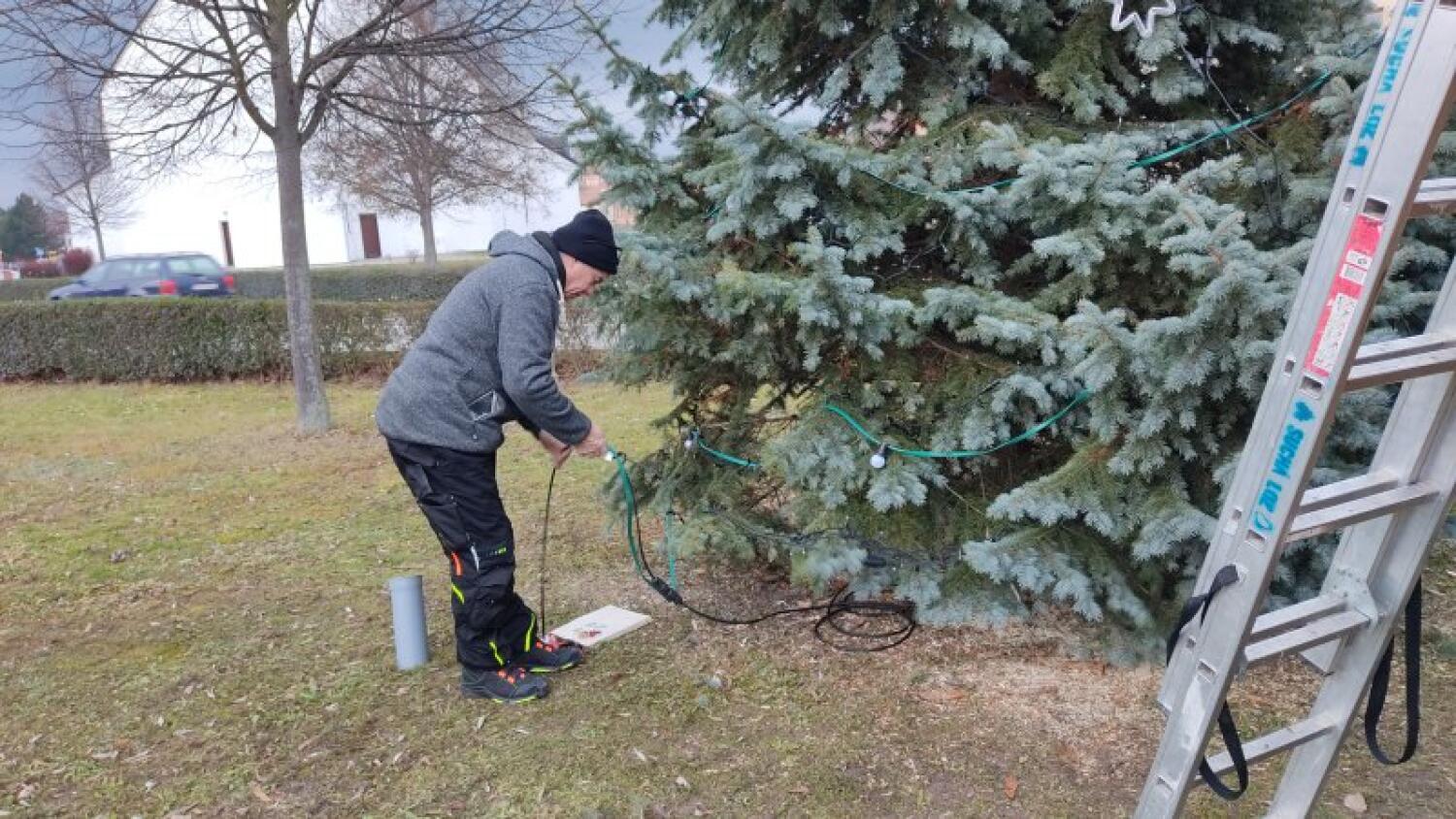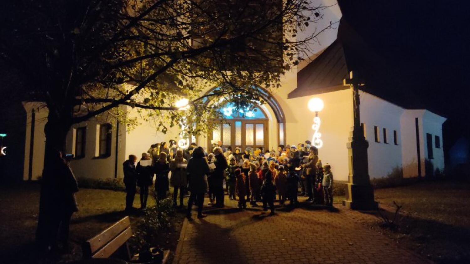 Rozsvicování vánočního stromu a zpívání koled u kostela sv. Ludmily