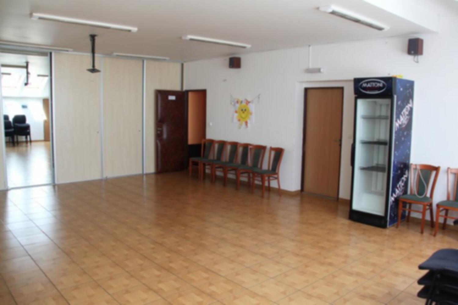 - prostor k pronájmu se skládá ze sálku, kuchňky, obecního baru s tanečním parketem a WC